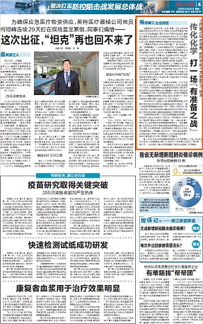 今天,《浙江日報》點贊傳化化學:防疫復產打一場“有準備之戰(zhàn)”