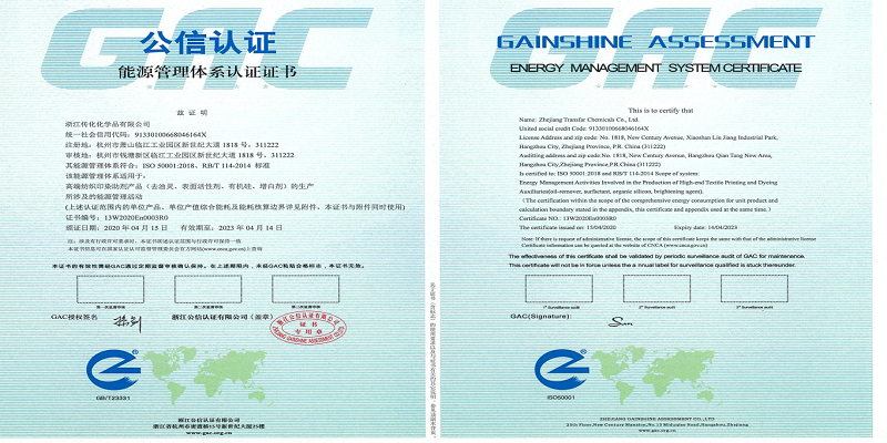 近日,經(jīng)國(guó)家認(rèn)監(jiān)委批準(zhǔn),浙江傳化化學(xué)集團(tuán)有限公司正式取得了ISO50001:218能源管理體系認(rèn)證證書,成為國(guó)內(nèi)紡織印染行業(yè)首批獲得能源管理體系認(rèn)證的單位,給紡織印染行業(yè)的綠色發(fā)展構(gòu)建了“新樣板”。