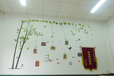 到了車間休息室,綠意盎然,墻上一棵挺拔茂盛的心愿樹(shù)平地而起。工作之余,在“樹(shù)下”坐坐,放松一下緊張的心情,和主管聊聊工作生活中的問(wèn)題,也提提對(duì)車間工作的建議,正所謂“樹(shù)下好乘涼”。