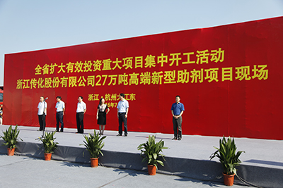 “傳化臨江項目有信心、有實力建設(shè)成為綠色、智能的時代型項目。再次對大江東園區(qū)對傳化臨江項目建設(shè)的支持表示感謝。謝謝大家!”這是化學(xué)集團總裁周家海在大江東舉行的全省擴大有效投資重大項目集中開工活動暨大江東7月份重大項目開工儀式上的講話。7月22日,全省擴大有效投資重大項目集中開工活動暨大江東7月份重大項目開工儀式于浙江省傳化股份有限公司年產(chǎn)27萬噸高端新型助劑項目建設(shè)現(xiàn)場舉行。即使當時驕陽似火,烈日炎炎,而這見證傳化發(fā)展的速度與激情的一刻,足以讓現(xiàn)場的傳化人激情澎湃。
