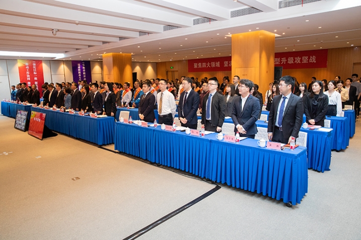 大會(huì)在雄壯的國(guó)歌聲中拉開序幕,并進(jìn)行先進(jìn)典型表彰